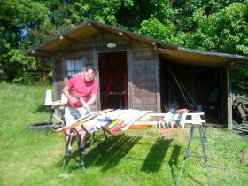 Das Resultat eine langen Arbeitstages sind 14 fertige Skier also Winter.